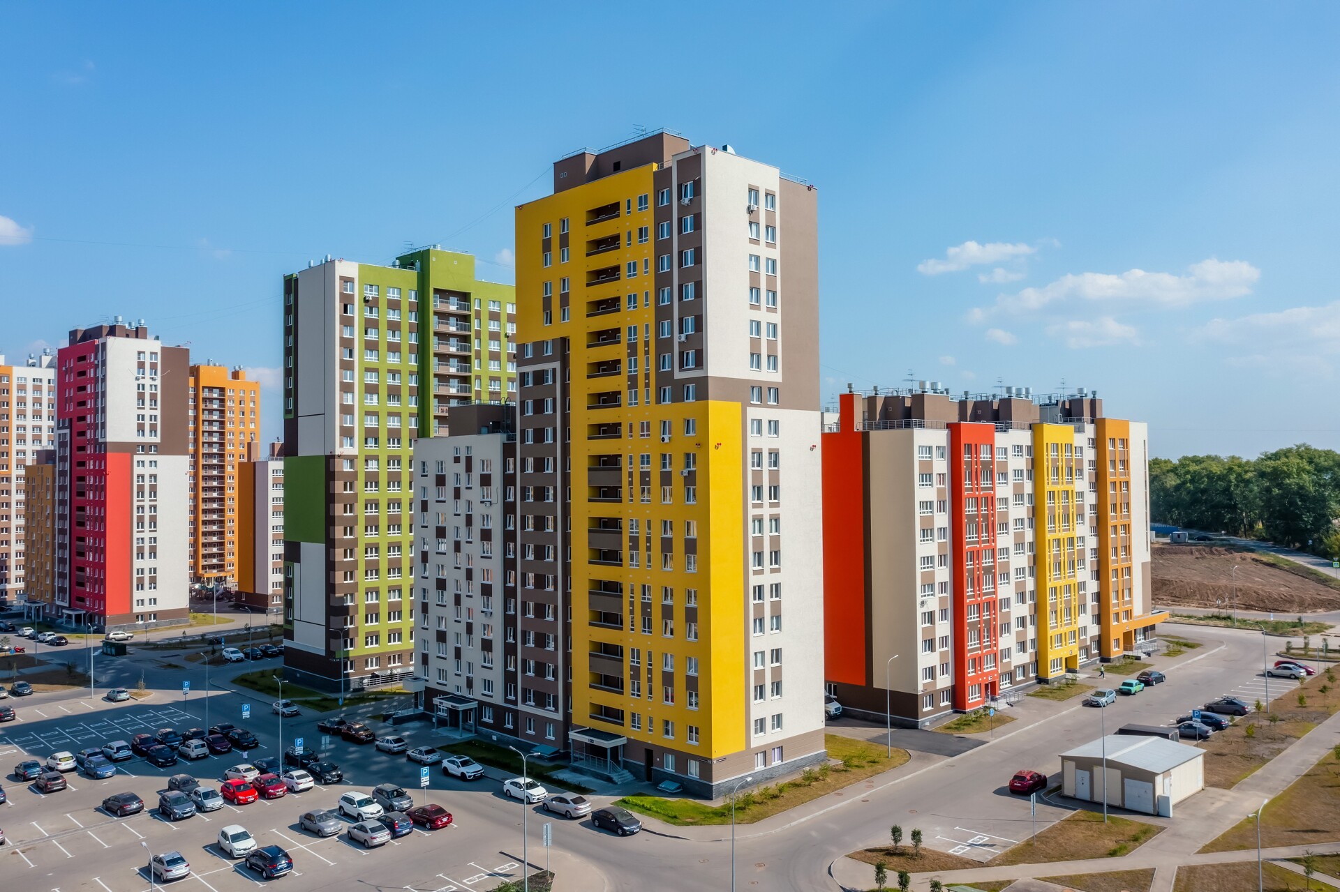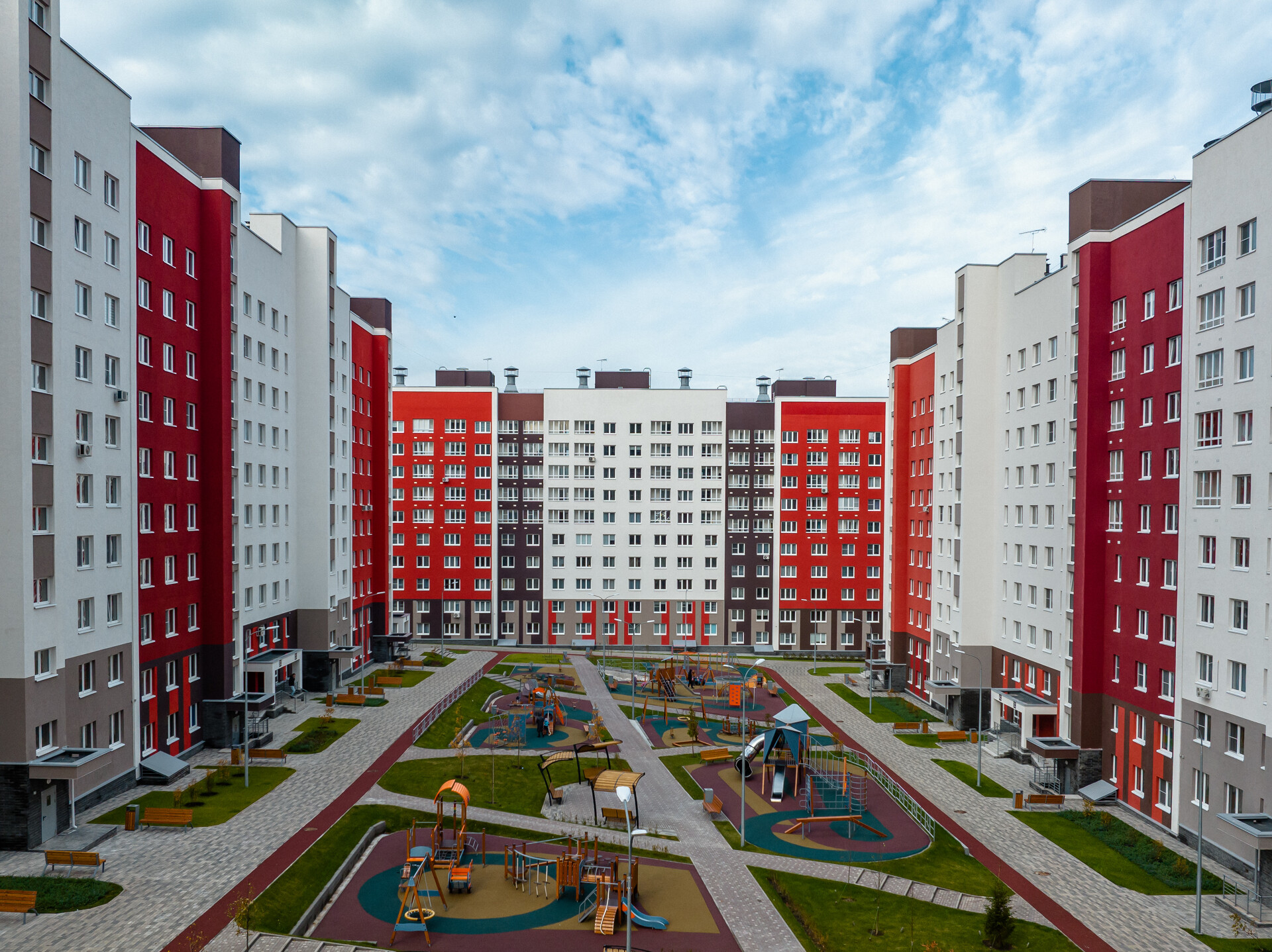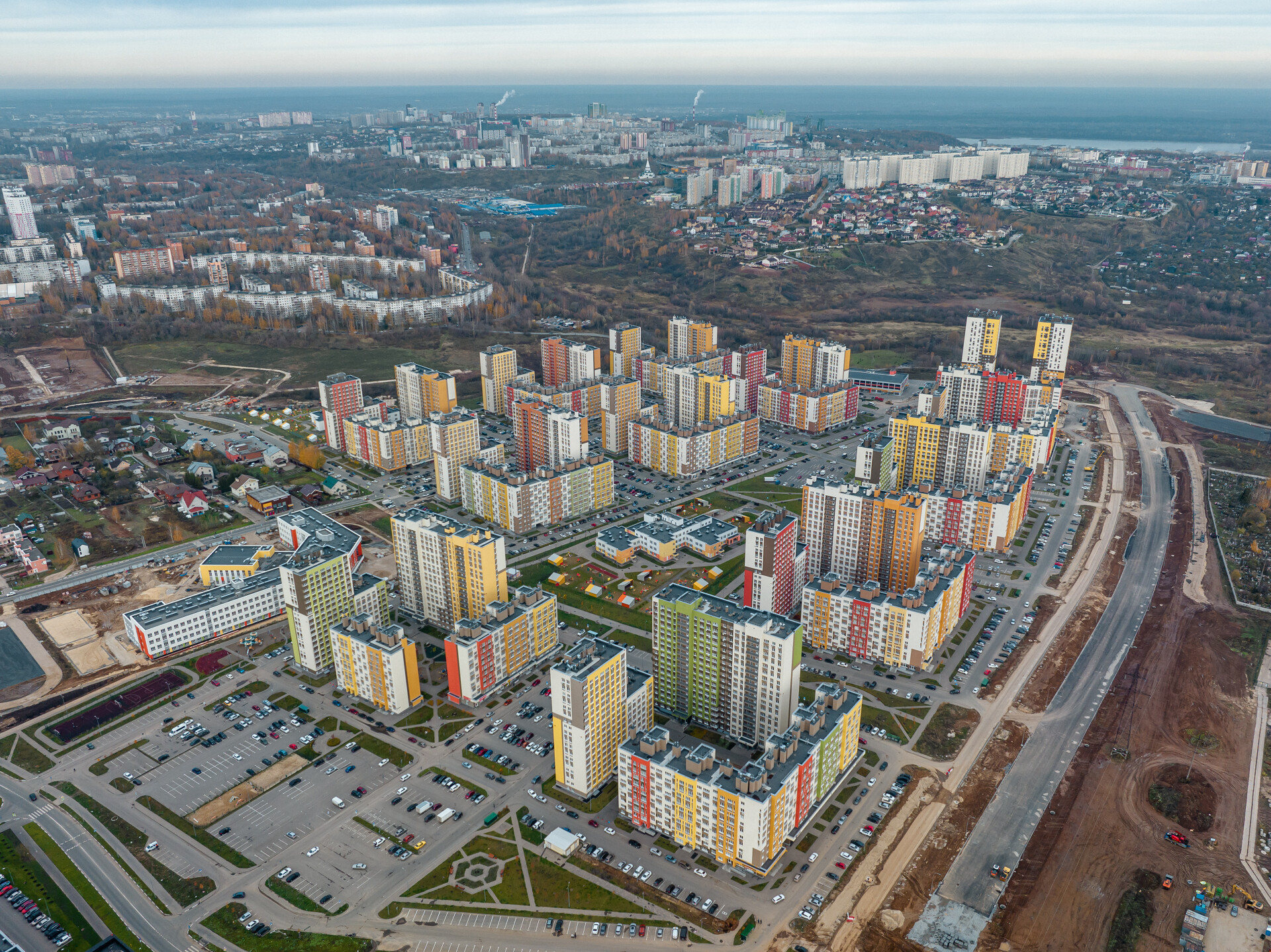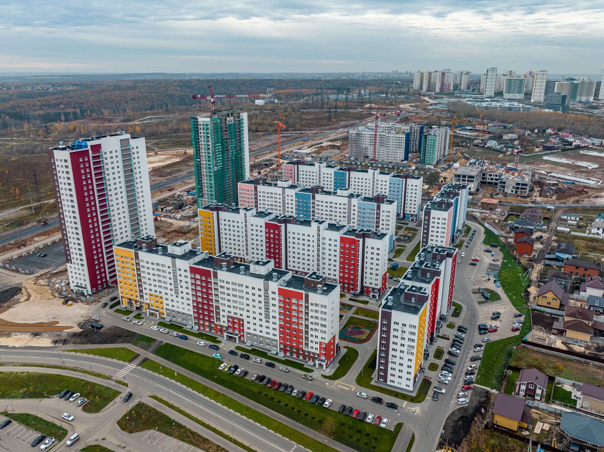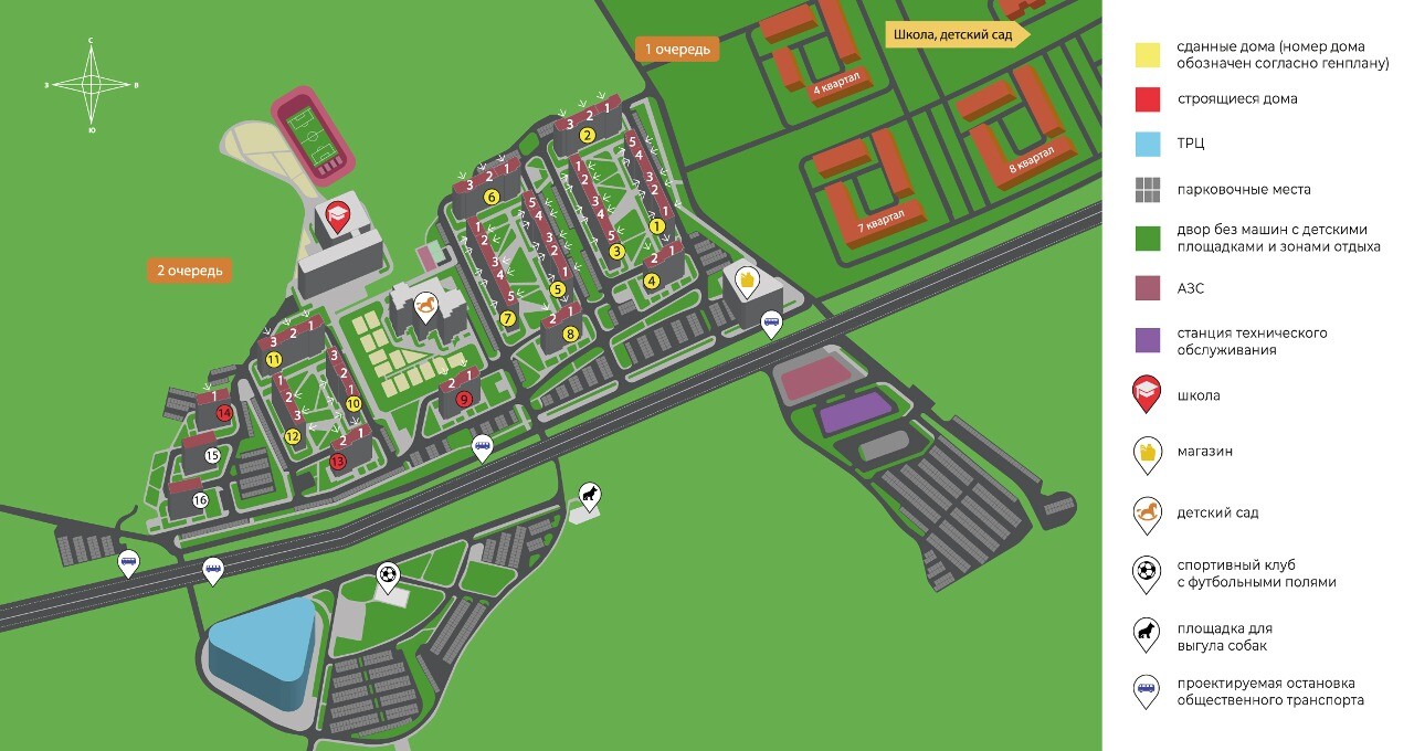 Проект включает в себя 12 кварталов - это 37 домов разной этажности от 10 до 18. На текущий момент введено в эксплуатацию 3 квартала жилого комплекса.