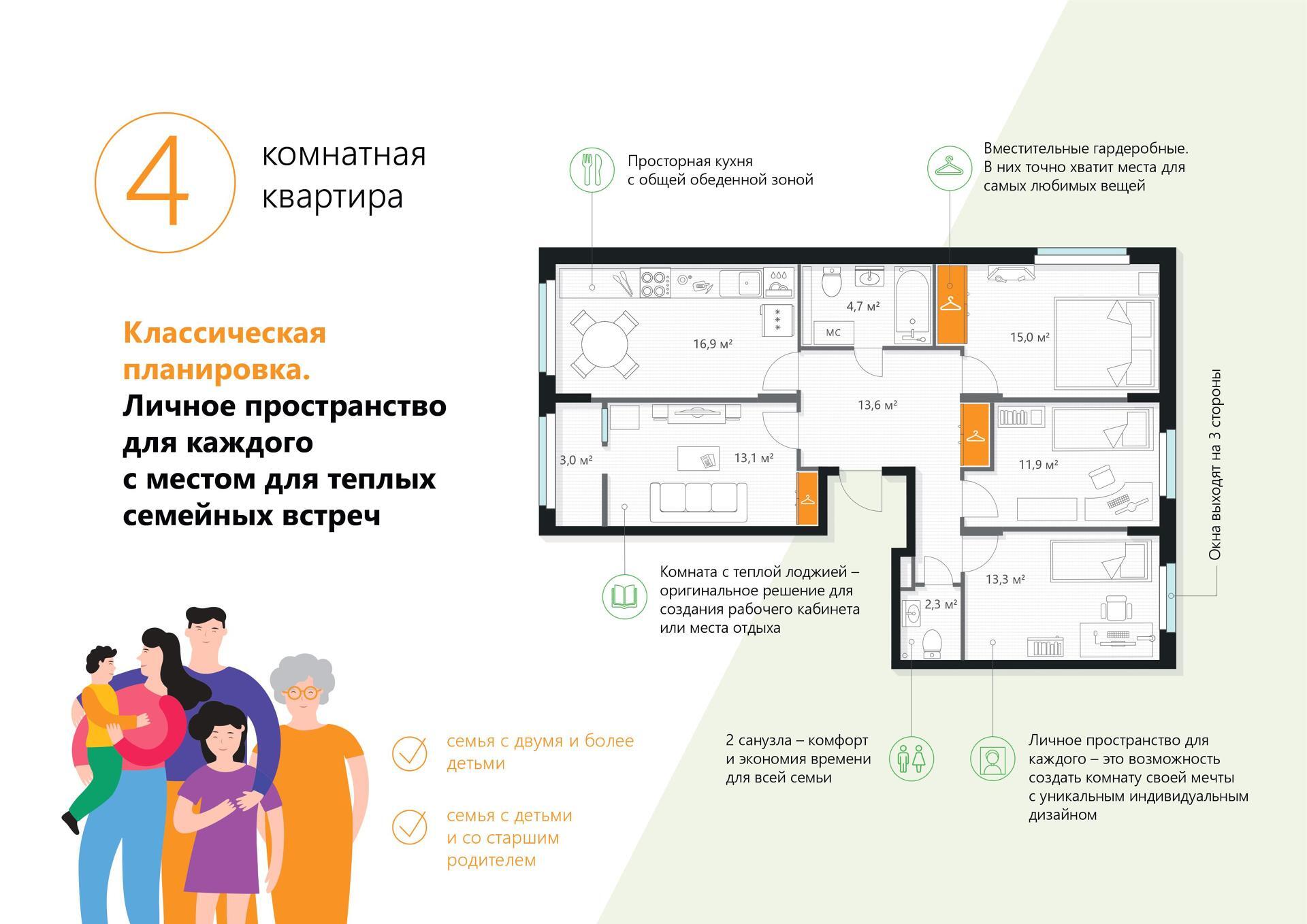 — от студий до 4-комнатных;