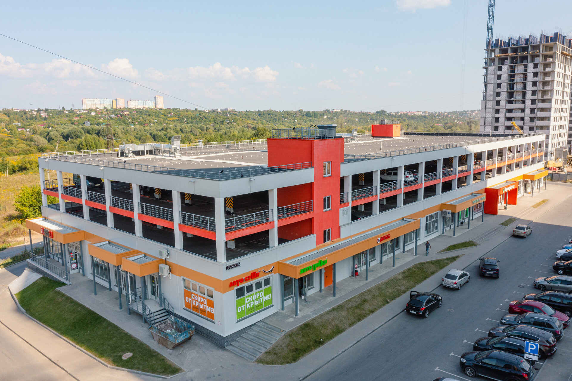 - наземные парковки и ТЦ с крытым паркингом площадью 1700 кв.м